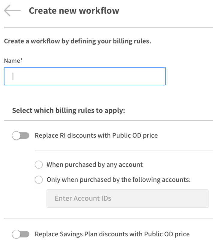 You can create a workflow without billing rules to run reports on raw data. The advantage to this choice is that it provides you with the cost and savings data quicker.